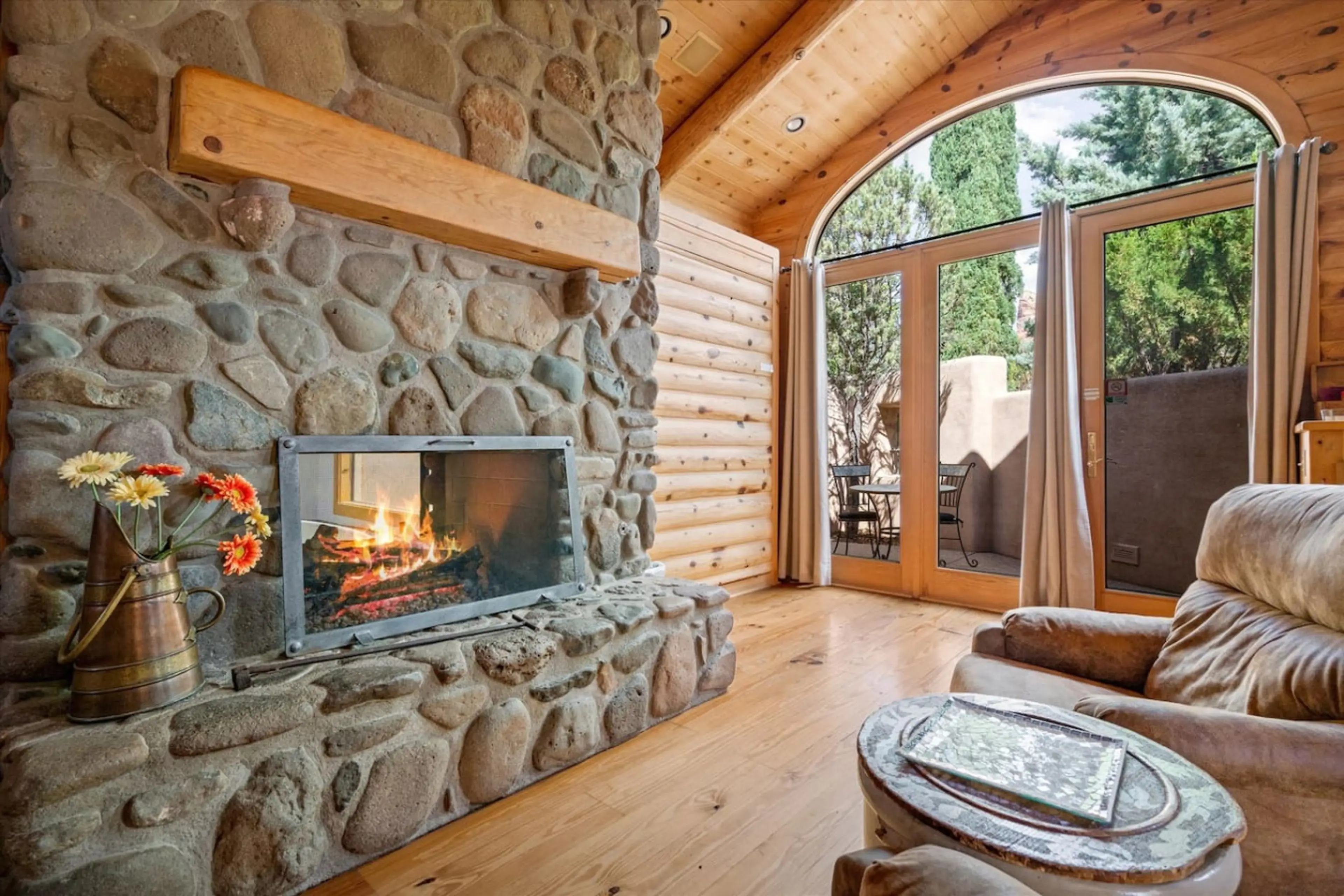 Located adjacent to the main building, the villa boasts the same appealing features as the standard and studio rooms but are larger and come with a spacious private patio overlooking the Red Rocks. The room is equipped with one king-size bed, one Murphy bed, living area with a fireplace, and a small...